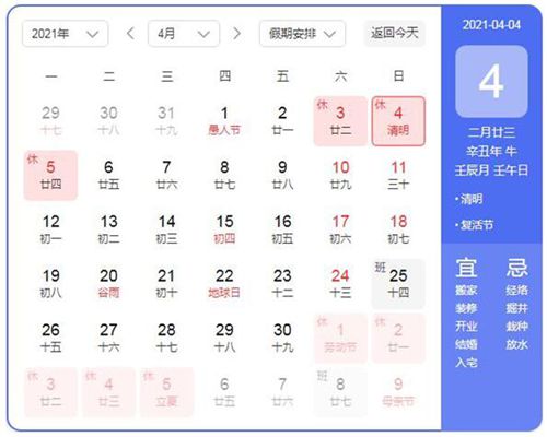 4月3日至4月5日,共放假3天。