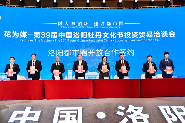 人民網(wǎng)洛陽4月12日電 (辛靜、常力元)4月12日上午,由河南省商務(wù)廳和洛陽市人民政府共同舉辦的“融入雙循環(huán) 建設(shè)都市圈—第39屆中國洛陽牡丹文化節(jié)投資貿(mào)易洽談會”在洛陽舉行。