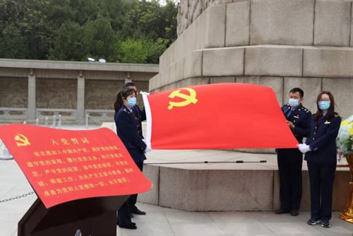 市市場監(jiān)管局機關黨員向淮海戰(zhàn)役烈士紀念塔烈士紀念碑敬獻花籃,向革命烈士三鞠躬,寄托無限哀思。參加活動的全體黨員在紀念碑前,面對黨旗,重溫入黨誓詞,牢記宗旨使命,強化責任擔當。