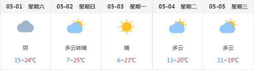 根據(jù)氣象部門預(yù)測(cè),節(jié)日期間全市天氣以多云為主,最高氣溫25℃,最低氣溫7℃,適宜短途出行。