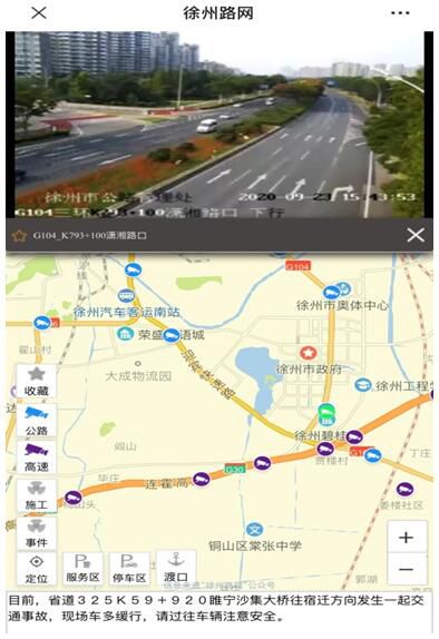 “五一”假期出游、返鄉(xiāng)路上市民通過(guò)關(guān)注“徐州路網(wǎng)”官方微信公眾號(hào),點(diǎn)擊公眾號(hào)下方的“路況信息”,就會(huì)出現(xiàn)全省高速公路和普通國(guó)省道的實(shí)時(shí)路況畫面,藍(lán)色代表普通國(guó)省道視頻,紫色則代表高速公路視頻,想看哪里點(diǎn)哪里,做到了路段監(jiān)控視頻秒級(jí)播放。此外,還有其他服務(wù)功能:收集了全省公路網(wǎng)施工信息、交通事故,以及服務(wù)區(qū)、停車區(qū)、渡口等實(shí)時(shí)信息。