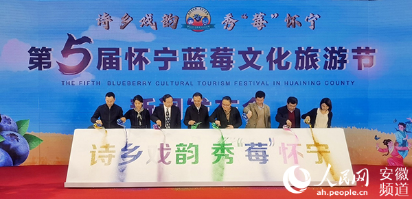 第五屆懷寧藍(lán)莓文化旅游節(jié)新聞發(fā)布會(huì)現(xiàn)場(chǎng)。人民網(wǎng) 周坤攝