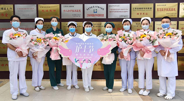 在徐州市腫瘤醫(yī)院,收到鮮花的護(hù)理人員代表高興地說:“今天收到鮮花,非常激動和自豪,感謝徐州報(bào)業(yè)傳媒集團(tuán),也感謝社會各界對護(hù)士工作的理解和支持!”