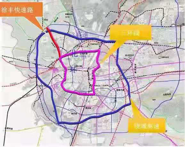 徐豐公路連接三環(huán)北路與京臺高速,是徐州市西北區(qū)域重要的出省通道、是連接主城區(qū)與九里片區(qū)、豐沛縣的重要交通通道。同時作為快速路網(wǎng)中重要射線的徐豐公路,隨著徐州社會經(jīng)濟的快速發(fā)展、環(huán)線快速路網(wǎng)的不斷完善,其交通壓力與日俱增,擁堵問題日益突出。根據(jù)交通量調(diào)研結果,高峰小時路段最大交通量已達3326pcu/h,隨著徐州市環(huán)線快速路網(wǎng)的逐步貫通,因此徐豐公路的快速化改造已經(jīng)迫在眉睫。