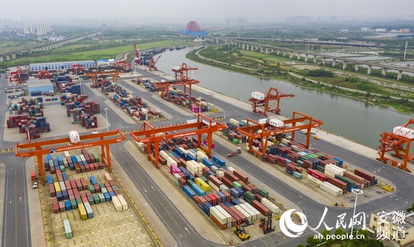 安徽省港航集團(tuán)旗下的合肥港國(guó)際集裝箱碼頭。人民網(wǎng) 張俊攝