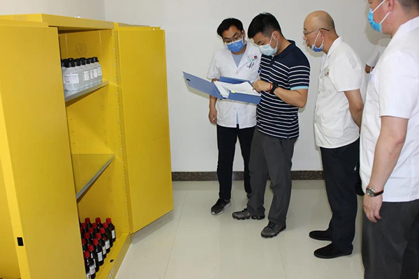 督導(dǎo)檢查組通過現(xiàn)場座談,聽取匯報,查看臺賬和實地檢查等形式展開督查。督查組抽檢院病理科、液氧站、危廢品暫存庫房等危廢化學(xué)品產(chǎn)生、存儲和待處置場所,并結(jié)合檢查中發(fā)現(xiàn)的問題有針對性地進(jìn)行指導(dǎo)。