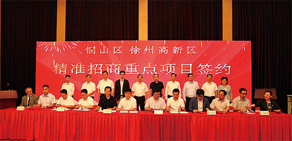 黃淮網(wǎng) 6月16日下午,徐州市銅山區(qū)、徐州高新區(qū)2021年度精準(zhǔn)招商重點(diǎn)項(xiàng)目簽約活動(dòng)舉行。徐州市市委書(shū)記、市人大常委會(huì)主任周鐵根講話(huà),市委副書(shū)記、市長(zhǎng)莊兆林主持,市委常委、秘書(shū)長(zhǎng)王強(qiáng),副市長(zhǎng)張克,區(qū)委書(shū)記、徐州高新區(qū)黨工委書(shū)記龔維芳,國(guó)科(上海)企業(yè)發(fā)展有限公司董事長(zhǎng)金軍,廣東先導(dǎo)稀材股份有限公司董事長(zhǎng)朱世會(huì),上海愛(ài)譜華頓電子科技集團(tuán)董事長(zhǎng)華建剛,深圳寶溢顯示技術(shù)有限公司董事長(zhǎng)張保平,區(qū)委常委、徐州高新區(qū)管委會(huì)常務(wù)副主任于帆,副區(qū)長(zhǎng)王鵬飛等出席活動(dòng)。