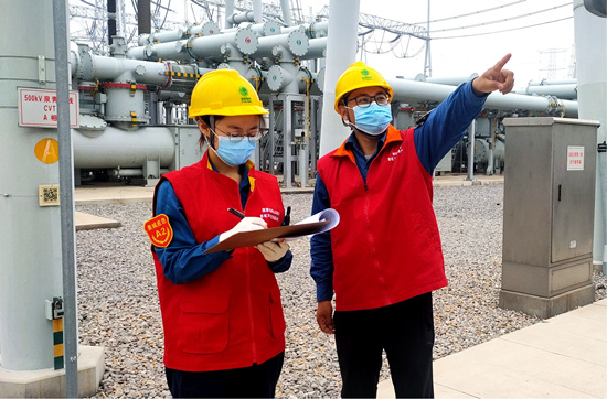 國網(wǎng)山東檢修公司進行特高壓變電站保電特巡。 夏苗攝