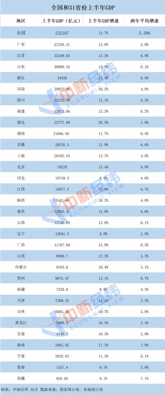此外,海南上半年GDP兩年平均增速居全國第二,值得注意的是,海南上半年GDP增速雖不及湖北,也明顯高于其他各省份,達到17.5%。
