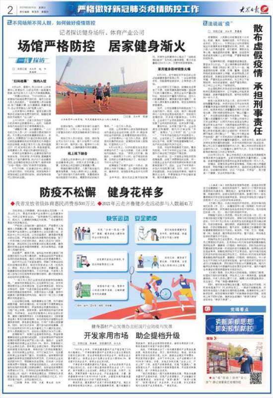 防疫要嚴(yán),健身不停。省和各市體育主管部門將疫情防控作為頭等大事來抓,體育運(yùn)動場所嚴(yán)格落實(shí)各項(xiàng)防疫政策措施,滿足人民群眾的體育健身需求。