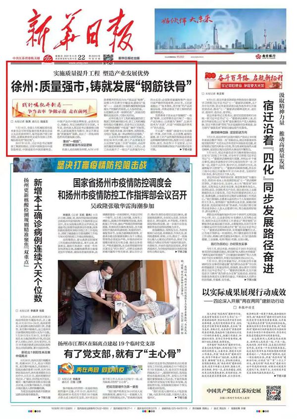 8月22日,《新華日?qǐng)?bào)》頭版頭條刊發(fā)《徐州:質(zhì)量強(qiáng)市,鑄就發(fā)展“鋼筋鐵骨”》報(bào)道,介紹了徐州深入落實(shí)習(xí)近平總書記重要指示精神,以新發(fā)展理念為指引,堅(jiān)定不移實(shí)施“質(zhì)量強(qiáng)市”戰(zhàn)略,走出了一條獨(dú)具特色的高質(zhì)量發(fā)展之路。