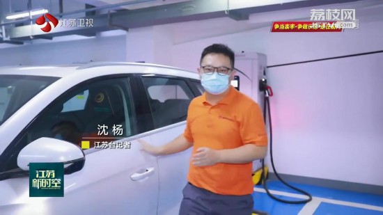 江蘇臺(tái)記者沈楊說:“對(duì)于很多新能源車主或者想要買新能源車的人來說,最擔(dān)心的莫過于充電樁不好找數(shù)量少。記者把車停到了江北新區(qū)的極客空間,這里不僅是一個(gè)8層的立體車庫,也是南京第一棟投入使用的新能源車專用充電樓。”