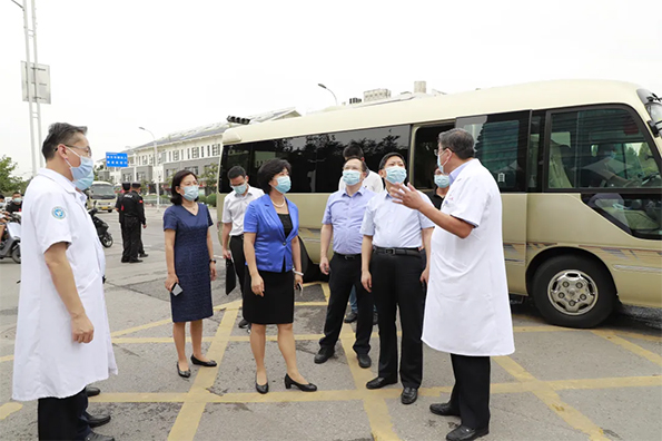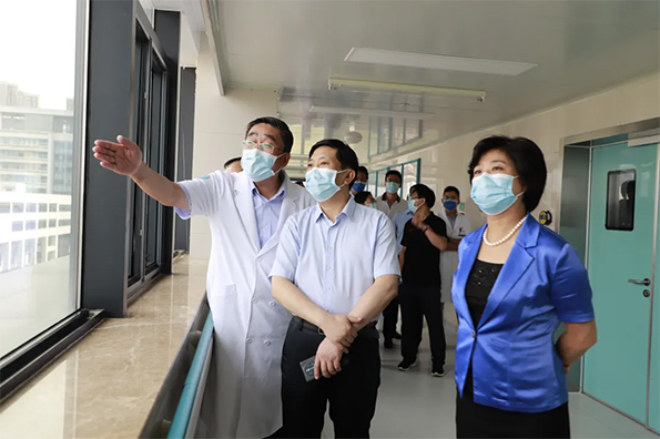 在巡查中,李燕副市長介紹了徐州疫情防控的各項工作部署。王人顥書記介紹了徐醫(yī)附院疫情防控的相關(guān)工作情況。特別是對進(jìn)一步增強東院核酸檢測能力,擴(kuò)容負(fù)壓病房,提升收治能力等疫情防控規(guī)劃作了重點匯報。
