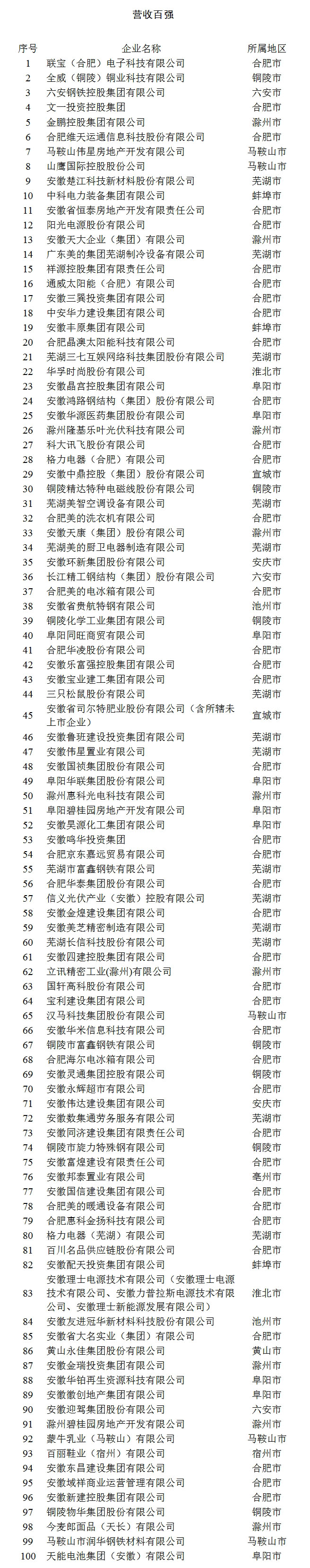 附:2021安徽省民營(yíng)企業(yè)百?gòu)?qiáng)榜單