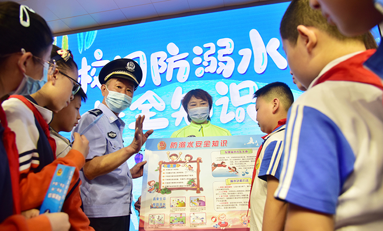 當(dāng)涂義警聯(lián)合姑孰派出所深入轄區(qū)小學(xué)開展防溺水宣傳活動。當(dāng)涂縣公安局供圖