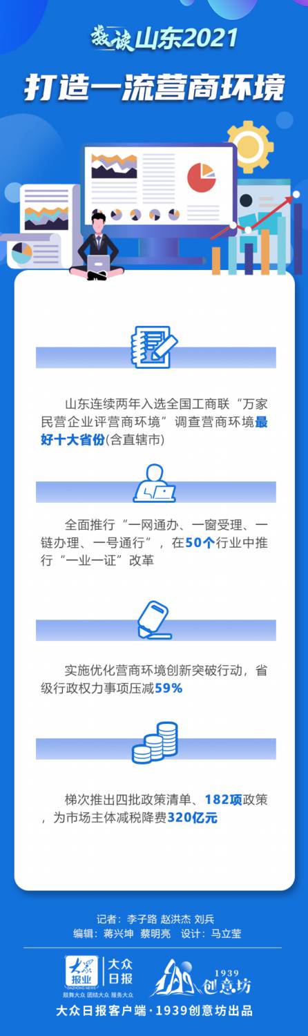 營(yíng)商環(huán)境是一個(gè)地區(qū)綜合競(jìng)爭(zhēng)力和發(fā)展生態(tài)優(yōu)劣的重要體現(xiàn)。“十四五”開局之年,山東堅(jiān)持以“一次辦好”改革為主線,以營(yíng)商環(huán)境創(chuàng)新突破行動(dòng)、政務(wù)服務(wù)“雙全雙百”工程為抓手,尋標(biāo)對(duì)標(biāo)國(guó)內(nèi)最優(yōu)水平,累計(jì)推出193項(xiàng)改革舉措,構(gòu)建“1+18”政策體系,營(yíng)商環(huán)境建設(shè)整體水平位列全國(guó)第一方陣——據(jù)全國(guó)工商聯(lián)“萬(wàn)家民營(yíng)企業(yè)評(píng)營(yíng)商環(huán)境”調(diào)查結(jié)果顯示,山東連續(xù)兩年入選營(yíng)商環(huán)境最好十大省份(含直轄市),今年位列全國(guó)第5名,比上年度前進(jìn)1個(gè)位次。