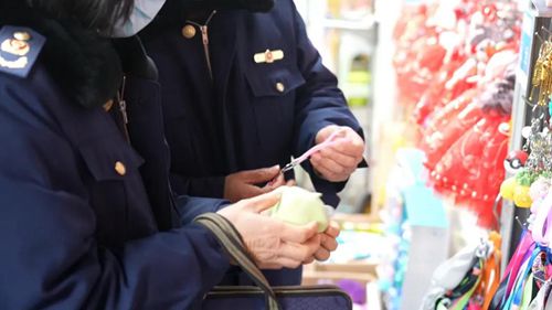 現(xiàn)場(chǎng),執(zhí)法人員仔細(xì)核對(duì)文具用品、紀(jì)念商品、毛絨玩具及小掛件等重點(diǎn)物品,檢查是否有違規(guī)侵權(quán)行為,細(xì)致詢問(wèn)相關(guān)店主貨物信息、進(jìn)貨渠道、銷售情況等,并對(duì)店鋪經(jīng)營(yíng)人員進(jìn)行知識(shí)產(chǎn)權(quán)宣傳教育。