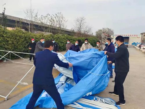 特殊的“黨員突擊隊”。這是一支全部由軍隊轉(zhuǎn)業(yè)干部組成的“黨員突擊隊”。隊長四級調(diào)研員高峰(正團職干部),認證認可處處長陸程、機關(guān)黨委副書記黃霏、黨務(wù)干部李少晨、政策法規(guī)處四級主任科員曹智峰、組織人事處四級主任科員劉強等幾名隊員全都是部隊轉(zhuǎn)業(yè)干部。4月4日中午12時,隊長高峰向這支特殊的“黨員突擊隊”下達了馳援徐州東高農(nóng)產(chǎn)品市場帳篷搭建任務(wù)的命令。時間緊迫,五名隊員有的還沒來及吃午飯就第一時間趕赴“戰(zhàn)場”,駐守該市場的食品餐飲處處長趙志龍和王倞隨即加入“戰(zhàn)斗”。清理場地、協(xié)調(diào)場地內(nèi)車輛轉(zhuǎn)移,選件卯榫、撐頂覆蓬、緊固拉伸、調(diào)整間距……一氣呵成!一頂頂帳篷拔地而起,“突擊隊”絲毫不懈怠,有的連接著配件顧不及擦汗,有的干脆短袖赤膊上陣,還有隊員手劃傷了包張紙巾繼續(xù)干。