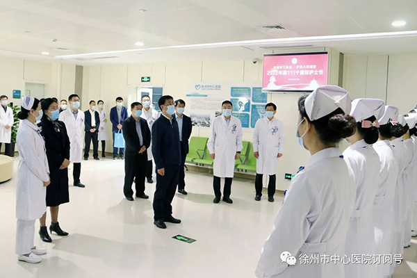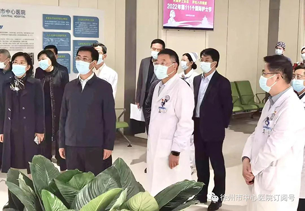 徐州市人民政府研究室主任吳建興,市衛(wèi)健委主任梁軍,市衛(wèi)健委黨委書記胡傳峰等一同慰問。徐州市中心醫(yī)院領(lǐng)導(dǎo)王培安、楊晶、陸仁平、滕民、韓從輝陪同。