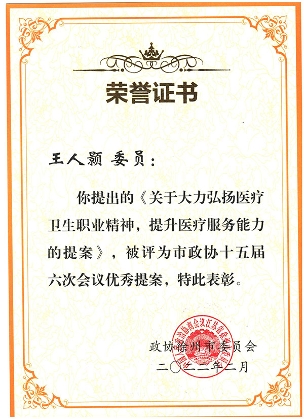 徐醫(yī)附院黨委書記王人顥提案獲評“市政協(xié)優(yōu)秀提案”