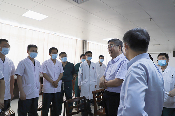 王人顥書記在講話中向睢寧縣人民醫(yī)院與徐醫(yī)附院幫扶專家齊心協(xié)力取得抗疫階段性勝利表示敬意和感謝,向幫扶睢寧縣人民醫(yī)院的40位專家表示慰問(wèn),對(duì)專家們圓滿完成抗疫任務(wù)并依然堅(jiān)守支援所展現(xiàn)出來(lái)的擔(dān)當(dāng)和奉獻(xiàn)予以充分肯定。他分享了徐醫(yī)附院“加強(qiáng)黨的建設(shè),以價(jià)值觀為引領(lǐng)推動(dòng)醫(yī)院高質(zhì)量轉(zhuǎn)型發(fā)展”的寶貴經(jīng)驗(yàn),特別指出高質(zhì)量發(fā)展是一個(gè)機(jī)遇,不管是城市公立醫(yī)院還是縣級(jí)公立醫(yī)院,甚至是鎮(zhèn)級(jí)公立醫(yī)院,一定要提早謀劃、超前謀劃,牢牢把握發(fā)展機(jī)遇,推動(dòng)高質(zhì)量發(fā)展,共同織出符合時(shí)代要求、踐行“人民至上,生命至上”理念的高質(zhì)量醫(yī)療網(wǎng)絡(luò),守護(hù)人民群眾生命健康。他表示在省衛(wèi)健委、徐州市政府、市衛(wèi)健委以及縣委、縣政府的支持下,將進(jìn)一步發(fā)揮徐醫(yī)附院的優(yōu)勢(shì),幫扶我院以及縣域醫(yī)共體,強(qiáng)化兩地醫(yī)療資源對(duì)接,形成優(yōu)勢(shì)互補(bǔ)、錯(cuò)位發(fā)展、互惠互利、共同發(fā)展的新格局。