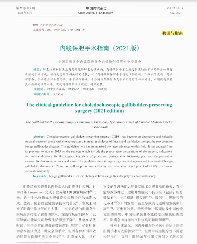《內(nèi)鏡保膽手術(shù)指南2021版》重磅發(fā)布