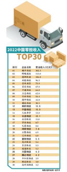 2022中國(guó)零擔(dān)收入TOP30評(píng)選,我省7家企業(yè)上榜 其中,兩家企業(yè)奪得區(qū)域零擔(dān)15強(qiáng)的冠亞軍