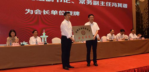 市人大常委會(huì)黨組副書(shū)記、常務(wù)副主任馮其譜為新當(dāng)選會(huì)長(zhǎng)單位授牌