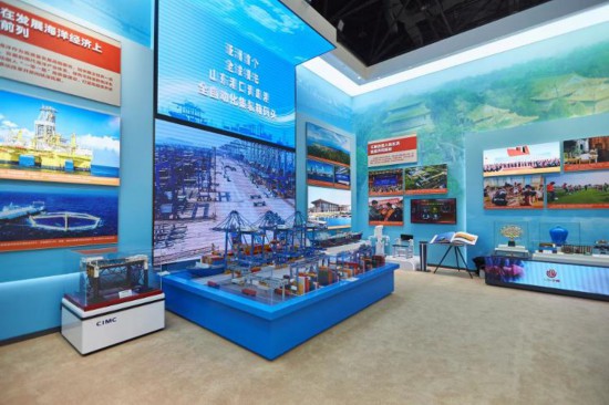 陸海統(tǒng)籌,向海圖強。展廳里,青島港全自動化集裝箱碼頭動態(tài)模型格外引人注目。模型能夠模擬全自動化碼頭工作的全過程,全面展現(xiàn)山東港口青島港自動化碼頭的風采。旁邊是全球第一艘10萬噸級漁業(yè)大型游弋養(yǎng)殖工船——“國信1號”模型,“國信1號”打造了智慧化的海上“藍色糧倉”。