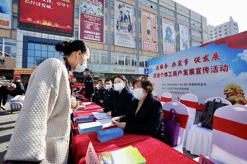 本次活動(dòng)以“送服務(wù)、辦實(shí)事、促發(fā)展”為主題,在活動(dòng)展區(qū)設(shè)置了注冊(cè)登記服務(wù)、減稅降費(fèi)咨詢、直補(bǔ)快辦咨詢、醫(yī)療保障咨詢、城市管理咨詢、退役軍人創(chuàng)業(yè)就業(yè)咨詢、法律咨詢以及銀商對(duì)接服務(wù)等8個(gè)咨詢服務(wù)臺(tái),現(xiàn)場(chǎng)為個(gè)體工商戶提供相關(guān)咨詢服務(wù),詳細(xì)解答有關(guān)辦事流程和方式,并向往來(lái)業(yè)戶和群眾分發(fā)宣傳手冊(cè)、宣傳彩頁(yè),宣傳11月1日剛剛實(shí)施的《促進(jìn)個(gè)體工商戶發(fā)展條例》。