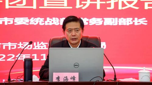 黃淮網(wǎng)(費堅真)  11月25日,徐州市委宣講團(tuán)成員,市委統(tǒng)戰(zhàn)部常務(wù)副部長李海峰在市市場監(jiān)管局開展宣講,全面深入解讀二十大精神,推動二十大精神在市場監(jiān)管系統(tǒng)深入人心。市市場監(jiān)管局黨委書記、局長呂宣瑞主持報告會。