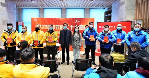 活動現(xiàn)場,市外賣配送行業(yè)黨委及市委組織部組織三處、市委兩新工委辦公室相關(guān)領(lǐng)導(dǎo),共同向外賣站點(diǎn)黨員代表們發(fā)放了《黨的二十大報告輔導(dǎo)讀本》《二十大黨章修正案學(xué)習(xí)問答》等學(xué)習(xí)材料,幫助黨員全面深入學(xué)習(xí)貫徹黨的二十大精神。呂宣瑞提出,要通過“三會一課”、主題黨日等載體,原原本本、逐字逐句學(xué)習(xí)黨的二十大報告和《中國共產(chǎn)黨章程(修正案)》,學(xué)習(xí)習(xí)近平總書記在黨的二十屆一中全會上的重要講話精神。全面學(xué)習(xí)貫徹落實(shí)黨的二十大精神,首先就是要在思想上深刻認(rèn)識大會的重大意義,切實(shí)增強(qiáng)學(xué)習(xí)貫徹的自覺性和堅定性。呂宣瑞還從十五個方面對習(xí)近平總書記在中國共產(chǎn)黨第二十次全國代表大會上所作的報告進(jìn)行全面剖析,引導(dǎo)參會人員以“一盤棋”的謀劃、“一張網(wǎng)”的體系、“一股勁”的激情,學(xué)透、悟透黨的二十大精神,用“紅色動力”凝聚“學(xué)習(xí)合力”,在徐州市外賣配送行業(yè)掀起學(xué)習(xí)黨的二十大精神熱潮,打造黨建“最活躍的地帶”“最堅強(qiáng)的陣地”。