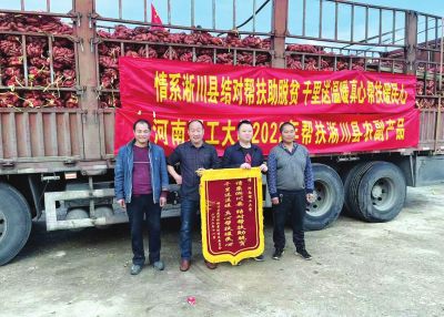 ①河南理工大學(xué)與淅川縣校地結(jié)對幫扶解決蔬菜賣難問題。