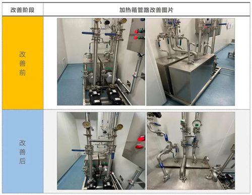 ◎企業(yè)水針車間1配料崗位加熱箱改造:通過分析評估,對兩臺加熱箱出口管路改造,使每一臺加熱箱同時(shí)對配料Ⅲ設(shè)備加熱和配料Ⅱ換熱器加熱,另一臺加熱箱備用,節(jié)約用電。