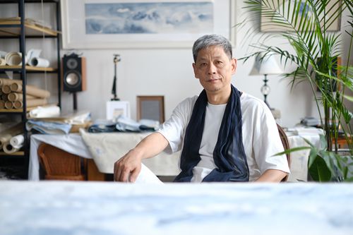 這里展出的作品,原打算只拿出我略具代表性的“水韻青花”系列作品。在策展過程中,許多好友建議我不同時(shí)期的作品也要有些呈現(xiàn),也好讓大家更好地了解我的心路歷程。所以,這次展出的有我曾經(jīng)在中國(guó)美術(shù)館個(gè)展“存在與希望”的彩墨,有習(xí)古的“古韻彈墨”和師法自然的“遇化黃山”作品。