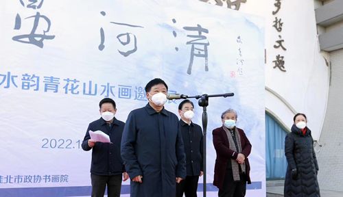 為深入學(xué)習(xí)宣傳貫徹黨的二十大精神,進(jìn)一步加強(qiáng)書香政協(xié)建設(shè),在淮北市政協(xié)十一屆二次會(huì)議即將召開之際,淮北市政協(xié)書畫院邀請(qǐng)水韻青花開創(chuàng)者許振回鄉(xiāng)舉辦“海晏河清”許振水韻青花山水畫邀請(qǐng)展;幢笔惺姓䥇f(xié)副主席董哲主持開幕式儀式。這次畫展由淮北市政協(xié)書畫院主辦,淮北市博物館承辦。本次展期為15天,具體地址在淮北市相山區(qū)博物館路1號(hào)。