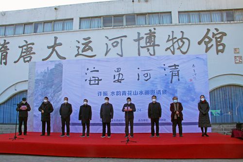 黃淮網(wǎng)(宋 梅)  12月24日上午,以“海晏河清”為主題的許振水韻青花山水畫邀請(qǐng)展在安徽省淮北市博物館開展。