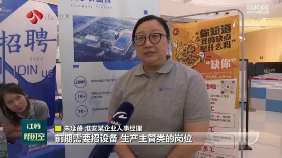 淮安某企業(yè)人事經(jīng)理朱延蓓說,前期需要招設(shè)備、生產(chǎn)主管類的崗位,今年年底公司正式投產(chǎn)以后,也會提供400-500個一線工人的崗位。招聘現(xiàn)場人員比較密集,有利于企業(yè)快速完成招聘任務(wù)。
