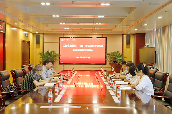 黃淮網(wǎng)(榮良忠 杜瑤)為認(rèn)真落實(shí)“八五”普法規(guī)劃中期實(shí)施評估工作,深入了解衛(wèi)生健康法治建設(shè)工作相關(guān)情況,9月26日上午,江蘇省衛(wèi)健委法規(guī)處處長何新羊一行5人,到徐州醫(yī)科大學(xué)附屬醫(yī)院進(jìn)行“八五”普法規(guī)劃中期實(shí)施及法治建設(shè)調(diào)研。徐州市中醫(yī)藥管理局副局長姜勇、徐州市衛(wèi)健委法規(guī)處處長石峰、徐醫(yī)附院紀(jì)委書記談在祥、法務(wù)辦公室主任榮良忠陪同調(diào)研。調(diào)研會議在徐醫(yī)附院第三會議室舉行,由徐醫(yī)附院紀(jì)委書記談在祥主持。