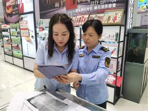 “雙節(jié)”期間,商家推出各類促銷活動(dòng),琳瑯滿目的化妝品也飽受消費(fèi)者關(guān)注。在人民商場(chǎng),執(zhí)法人員正使用藥械化智慧監(jiān)管平臺(tái),對(duì)在售化妝品的溯源和銷售進(jìn)行檢查,重點(diǎn)查看化妝品的合法性,包括批準(zhǔn)文號(hào)、備案編號(hào)、生產(chǎn)日期、限期使用日期等信息是否規(guī)范,切實(shí)保障化妝品經(jīng)營(yíng)使用環(huán)節(jié)的質(zhì)量安全。