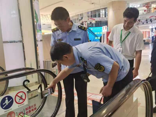 電梯作為我們身邊常見(jiàn)的特種設(shè)備之一,對(duì)它的安全監(jiān)管也是市場(chǎng)監(jiān)管部門(mén)節(jié)日期間關(guān)注的重點(diǎn)。中鈺購(gòu)物中心是邳州城區(qū)一家大型綜合商場(chǎng),節(jié)日期間人流量驟增,執(zhí)法人員對(duì)商場(chǎng)在用的電梯和扶梯進(jìn)行全面細(xì)致的檢查。“我們現(xiàn)場(chǎng)檢查電梯的本體安全,首先要看它的檢驗(yàn)標(biāo)志,如果電梯是被檢驗(yàn)過(guò)的,說(shuō)明這臺(tái)電梯的安全性能是有保障的,像這臺(tái)電梯,檢驗(yàn)有效期至2023年11月,說(shuō)明現(xiàn)在是在有效期內(nèi)的。我們通過(guò)掃描這個(gè)96333的二維碼,就可以看到電梯的出廠日期、設(shè)備代碼、維保日期等基本信息。”特種設(shè)備安全監(jiān)察科科長(zhǎng)張雷一邊檢查一邊介紹到。為應(yīng)對(duì)節(jié)日期間人流高峰,監(jiān)管人員還要求電梯維保人員常駐購(gòu)物中心,及時(shí)排除安全隱患。