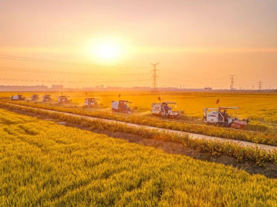 江蘇省農(nóng)業(yè)農(nóng)村廳有關(guān)負責(zé)人介紹,目前,江蘇已在全國率先整省基本實現(xiàn)糧食生產(chǎn)全程機械化,農(nóng)作物耕種收綜合機械化率達85%,其中水稻、小麥、玉米三大糧食作物達95%,農(nóng)業(yè)科技進步貢獻率達71.8%,以上兩項指標均高出全國平均值近10個百分點。今年夏收,江蘇投入聯(lián)合收割機12萬臺、烘干機3.5萬臺。據(jù)監(jiān)測,全省小麥平均機收損失率控制到1%以下。農(nóng)業(yè)機械化快速發(fā)展,正深刻改變農(nóng)戶的種植理念和習(xí)慣。當前,江蘇的農(nóng)業(yè)生產(chǎn)已從主要依靠人力畜力轉(zhuǎn)向主要依靠機械動力,進入機械化主導(dǎo)階段。下一步,江蘇農(nóng)業(yè)機械化將向全程全面高質(zhì)量發(fā)展加速邁進。