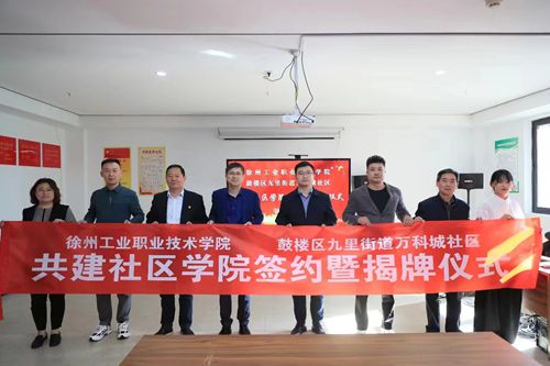 黃淮網(wǎng)(尹 健)  10月20日下午,徐州市第一所“社區(qū)學(xué)院--徐州工業(yè)職業(yè)技術(shù)學(xué)院萬(wàn)科城社區(qū)學(xué)院”在鼓樓區(qū)九里街道萬(wàn)科城社區(qū)舉行簽約揭牌儀式,標(biāo)志著徐州工業(yè)職業(yè)技術(shù)學(xué)院與萬(wàn)科城社區(qū)的共建活動(dòng)上升到一個(gè)新的臺(tái)階。