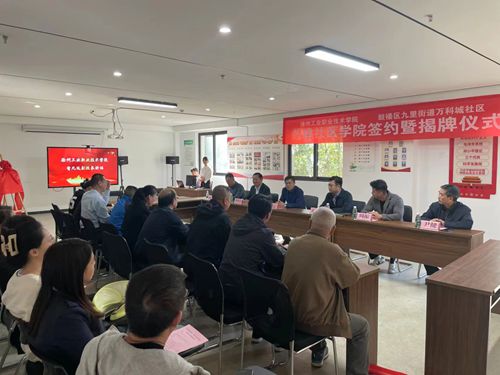 近年來(lái),徐州工業(yè)職業(yè)技術(shù)學(xué)院和萬(wàn)科城社區(qū)多次開展共建活動(dòng),結(jié)下了深厚的友誼。為貫徹落實(shí)黨的二十大精神,深入學(xué)習(xí)習(xí)近平新時(shí)代中國(guó)特色社會(huì)主義思想,進(jìn)一步發(fā)揮院校面向社會(huì)的服務(wù)功能,積極推動(dòng)社區(qū)教育的普及和發(fā)展,加快形成全民學(xué)習(xí)、終身學(xué)習(xí)的學(xué)習(xí)型社會(huì),徐州工業(yè)職業(yè)技術(shù)學(xué)院和萬(wàn)科城社區(qū)共同決定成立“徐州工業(yè)職業(yè)技術(shù)學(xué)院萬(wàn)科城社區(qū)學(xué)院”。