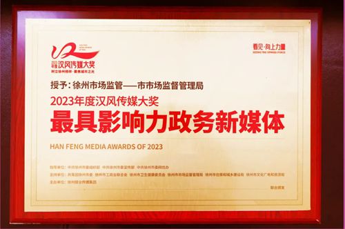 黃淮網(wǎng)(費(fèi)堅(jiān)真 通訊員 徐仕評(píng))  新的一年,新的榮譽(yù)!2024年元旦期間,由徐州報(bào)業(yè)傳媒集團(tuán)發(fā)起,市委組織部、市委宣傳部、市委網(wǎng)信辦等部門指導(dǎo)、支持的“2023年度漢風(fēng)傳媒大獎(jiǎng)”揭曉,其中,徐州市市場(chǎng)監(jiān)督管理局開(kāi)設(shè)的“徐州市場(chǎng)監(jiān)管”微信公眾號(hào)獲頒“最具影響力政務(wù)新媒體”獎(jiǎng)項(xiàng)。