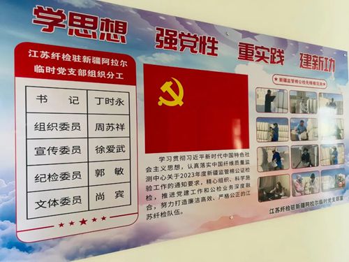 2023年10月7日,經(jīng)江蘇省市場監(jiān)督管理局批準(zhǔn),成立赴疆監(jiān)管棉公正檢驗(yàn)服務(wù)隊(duì)阿拉爾臨時(shí)黨支部,徐州市檢驗(yàn)檢測中心丁時(shí)永同志擔(dān)任支部書記。