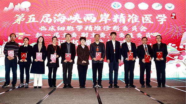 劉東戈教授、金木蘭教授為海峽兩岸精準(zhǔn)醫(yī)學(xué)-臨床細(xì)胞精準(zhǔn)診斷委員會換屆頒發(fā)證書。