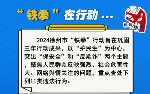 黃淮網(wǎng)(費(fèi)堅(jiān)真 通訊員 徐仕評(píng)) 2月29日,徐州市場(chǎng)監(jiān)管部門(mén)發(fā)布了《2024年 “鐵拳”行動(dòng)違法線索征集公告》(以下簡(jiǎn)稱(chēng)《公告》),《公告》征集2024年重點(diǎn)查處下列五個(gè)方面11類(lèi)違法行為線索: