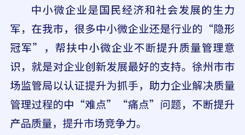 黃淮網(wǎng)(費(fèi)堅(jiān)真 通訊員 徐仕評(píng)) 近日,江蘇省市場(chǎng)監(jiān)管局印發(fā)《省市場(chǎng)監(jiān)管局關(guān)于2023年度全省小微企業(yè)質(zhì)量管理體系認(rèn)證提升行動(dòng)工作質(zhì)量考核情況的通報(bào)》,徐州市在2023年認(rèn)證提升行動(dòng)工作考核中成效顯著,連續(xù)兩年獲得全省第二名,豐縣區(qū)域試點(diǎn)提升工作受到國(guó)家總局和省局的多次表?yè)P(yáng)。