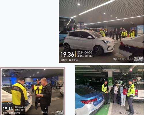 開(kāi)發(fā)區(qū)執(zhí)法大隊(duì)積極應(yīng)對(duì)五一假期客流高峰,在高鐵徐州東西廣場(chǎng)區(qū)域巡查。